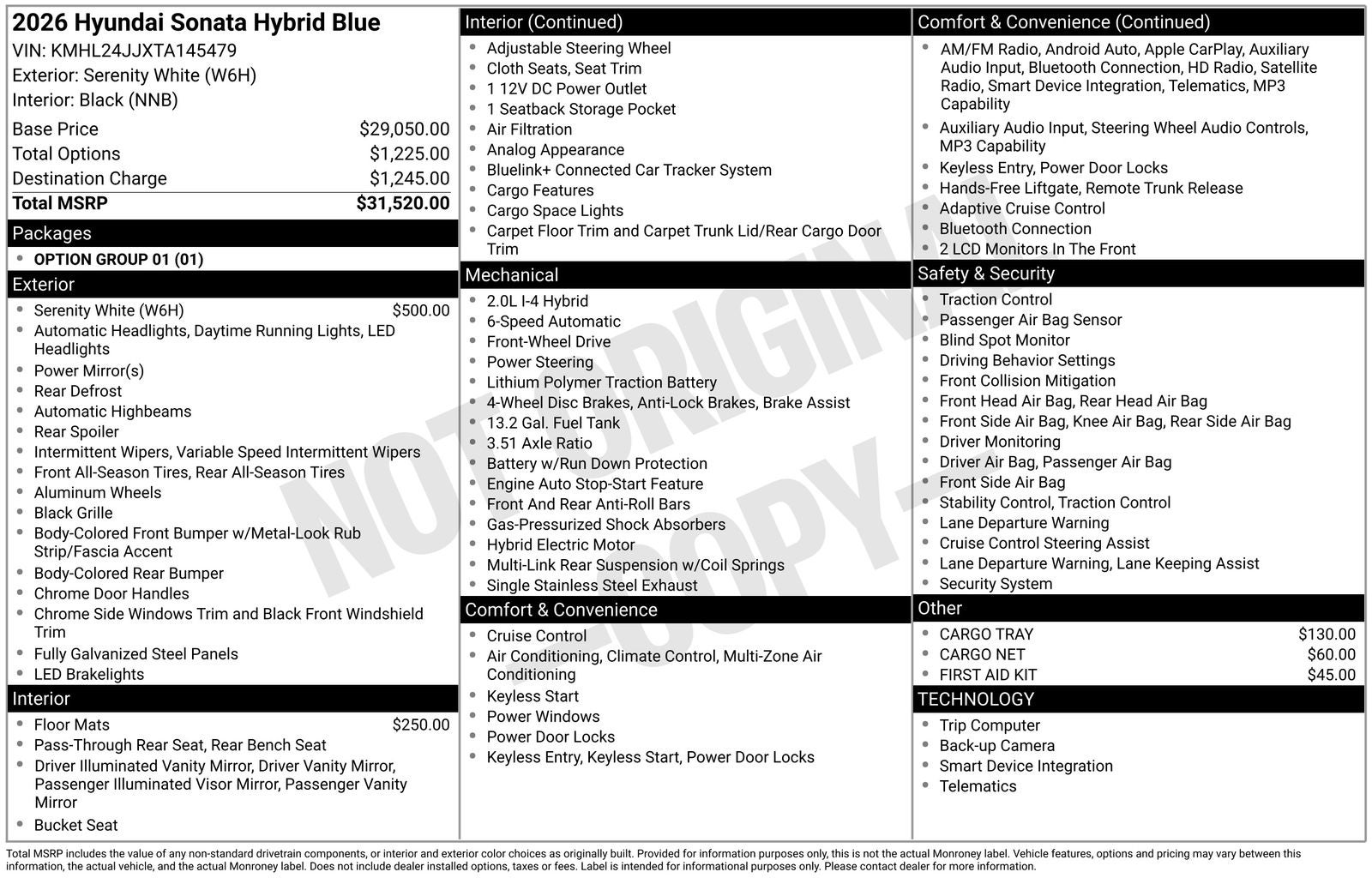 - Vehicle Name: Hyundai Sonata Hybrid