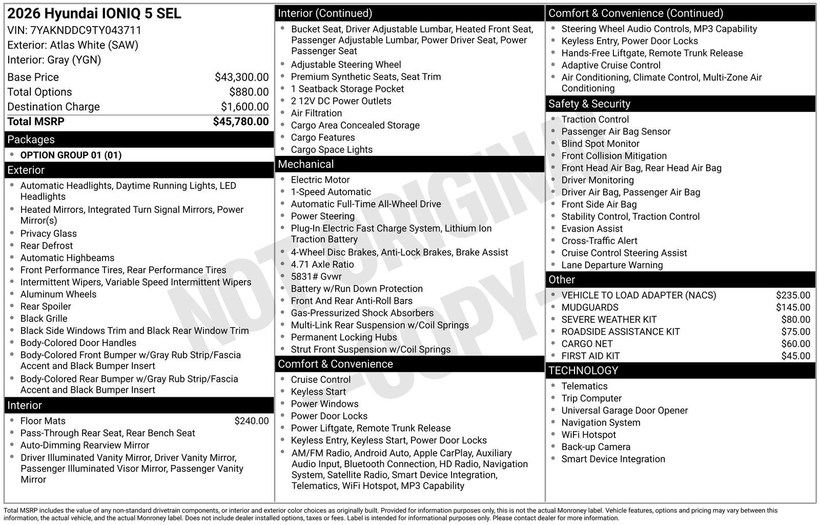 - MSRP: $45,780