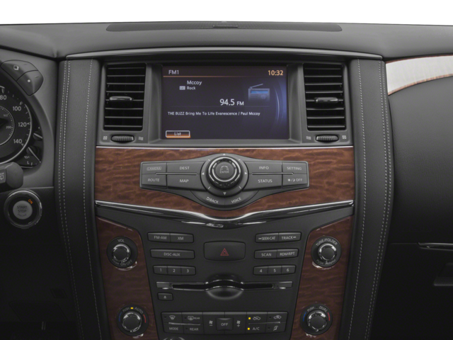 4WD, 13 Speakers, 2.937 Axle Ratio, 2nd & 3rd Row Carpeted Mats, 3rd row seats: split-bench, 4-Wheel Disc Brakes, ABS brakes, Activation Disclaimer, Air Conditioning, Alloy wheels, AM/FM radio: SiriusXM, Anti-whiplash front head restraints, Auto tilt-away steering wheel, Auto-dimming door mirrors, Auto-dimming Rear-View mirror, Auto-leveling suspension, Automatic temperature control, Brake assist, Bumpers: body-color, CD player, Delay-off headlights, Driver door bin, Driver vanity mirror, Dual front impact airbags, Dual front side impact airbags, Electronic Stability Control, Emergency communication system: NissanConnect Services, Four wheel independent suspension, Front anti-roll bar, Front Bucket Seats, Front Center Armrest, Front dual zone A/C, Front fog lights, Front reading lights, Fully automatic headlights, Garage door transmitter: HomeLink, Heated door mirrors, Heated Front Bucket Seats w/Driver Memory, Heated front seats, Illuminated entry, Leather Shift Knob, Leather-Appointed Seat Trim, Low tire pressure warning, Memory seat, Navigation System, Occupant sensing airbag, Outside temperature display, Overhead airbag, Overhead console, Panic alarm, Passenger door bin, Passenger vanity mirror, Power door mirrors, Power driver seat, Power Liftgate, Power passenger seat, Power steering, Power windows, Radio data system, Radio: Bose AM/FM/SXM/CD/MP3/HD Radio, Rain sensing wipers, Rear air conditioning, Rear anti-roll bar, Rear reading lights, Rear seat center armrest, Rear window defroster, Rear window wiper, Reclining 3rd row seat, Remote keyless entry, Roof rack: rails only, Security system, Speed control, Speed-sensing steering, Speed-Sensitive Wipers, Split folding rear seat, Spoiler, Steering wheel memory, Steering wheel mounted audio controls, Tachometer, Telescoping steering wheel, Tilt steering wheel, Traction control, Trip computer, Turn signal indicator mirrors, Variably intermittent wipers, Voltmeter, Wheels: 20 Machined Finish Painted Alloy, 4WD.