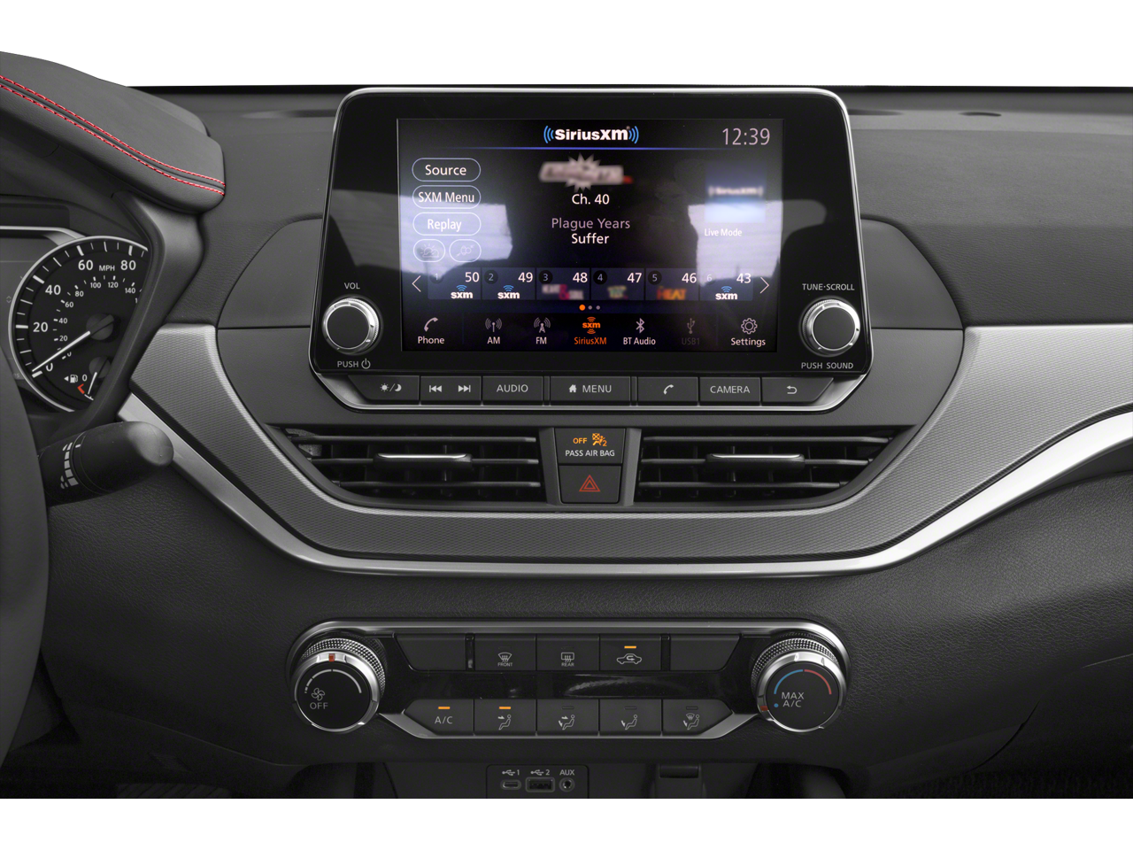 - Radio: AM/FM Audio System -inc: RDS, MP3, 9 speakers, NissanConnect services powered by SiriusXM, Wi-Fi hotspot, RDS, NissanConnect featuring 12.3" HD color display w/multi-touch control, Nissan door to door navigation, wireless Apple CarPlay, premium traffic and MapCare w/complimentary trials, SiriusXM Traffic, SiriusXM Travel Link, wireless phone charging pad, SiriusXM satellite radio w/advanced audio features, 1 front illuminated USB port (type-C) for compatible devices, SiriusXM radio w/advanced audio features, Bluetooth® hands-free phone system, streaming audio via Bluetooth®, hands-free text messaging assistant, Siri Eyes Free and Google Assistant voice recognition